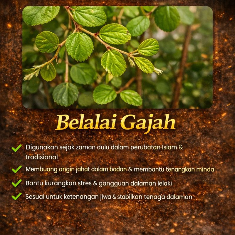Produk ini BUKAN ubat-ubatan dan BUKAN bertujuan untuk merawat, menyembuhkan atau mencegah sebarang penyakit. Ia adalah MAKANAN TAMBAHAN yang dirumus daripada bahan herba semula jadi untuk sokongan tenaga dan kesihatan tubuh badan.